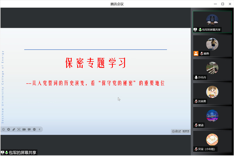 接着,学院副院长包军为学院全体基层党务工作者作保密教育培训专题授课培训分为两部分,第一部分是《从入党誓词的历史演变,看“保守党的秘密”的重要地位》的专题讲座,第二部分是集中观看《共筑保密防线,公民人人有责》的视频学习。2022年,学院从领导干部、党政团队,再到每位师生,既紧密联系实际,根据不同对象的类别、层次,有针对性地开展教育活动;同时把保密宣传教育与理想信念教育、国家安全教育、纪律教育、校园文化建设等结合起来,丰富保密宣传教育载体和形式,充分发挥主流媒体的导向作用,切实增强师生保密意识和保密常识,厚植安全保密的群众基础,营造良好的安全保密氛围。